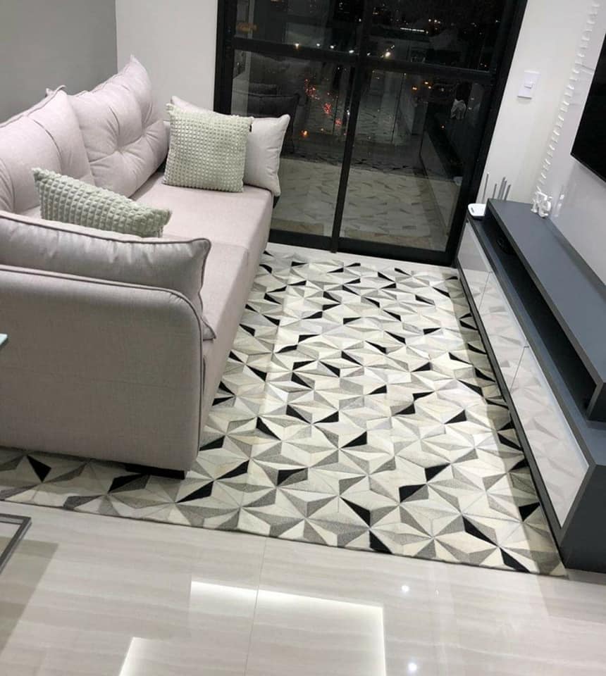 Os Tapetes de couro são feitos a partir de peças selecionadas de couro bovino nobre , oferecendo um padrão de quadriculado único. Confeccionados com costura em zig-zag, garantindo qualidade e resistência em cada acabamento. Os tapetes são confeccionados com todo cuidado, desde o corte das peças até a colocação do forro especial inteiro no tapete. Os tapetes de couro são excepcionalmente duráveis e fáceis de manter, combinação com ambientes rústicos ou modernos. Todos couros são curtidos de forma sustentável, visando assim , baixo impactos ambiental e sustentabilidade.