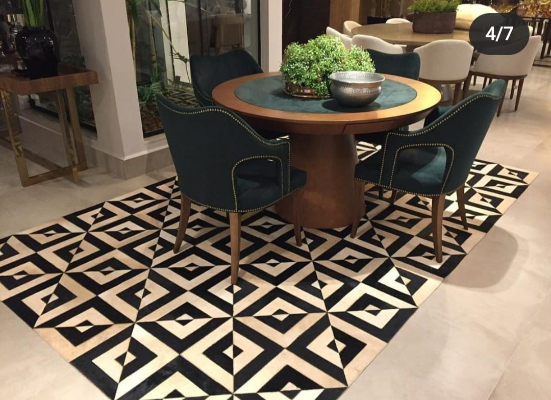 Os Tapetes de couro são feitos a partir de peças selecionadas de couro bovino nobre , oferecendo um padrão de quadriculado único. Confeccionados com costura em zig-zag, garantindo qualidade e resistência em cada acabamento. Os tapetes são confeccionados com todo cuidado, desde o corte das peças até a colocação do forro especial inteiro no tapete. Os tapetes de couro são excepcionalmente duráveis e fáceis de manter, combinação com ambientes rústicos ou modernos. Todos couros são curtidos de forma sustentável, visando assim , baixo impactos ambiental e sustentabilidade.